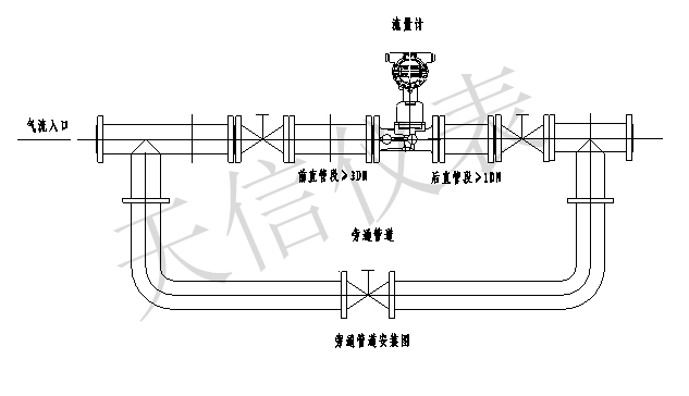 3、为了便于维修,不影响流体正常输送,建议按图所示设置旁通管道。