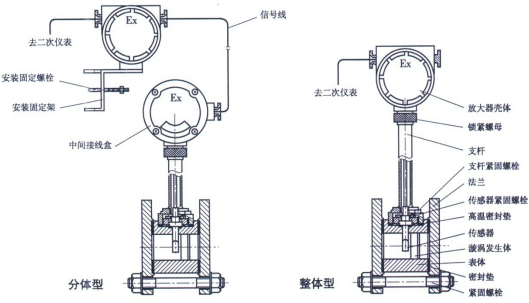 输出RS485的涡街流量计与其他设备之间连接线采用四线制的所需电源为24V±10%。